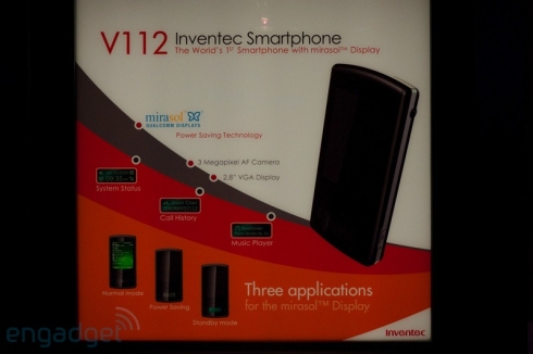 Inventec a prezentat in cadrul CTIA 2009 un nou smartphone cu diplay mirasol. Ghinionul a facut ca noul model prezentat V112 sa nu functioneze. Fie ca problema este bateria telefonului sau procesorul Qualcomm, handsetul nu a reusit sa porneasca pentru a putea fi testat de vizitatorii standului.