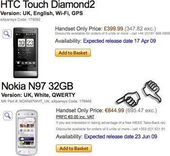 Retailerul online Expansys a furnizat de putine ori de-a lungul anilor date de lansare ale terminalelor mobile care erau asteptate sa apara pe piata si nu ne-au inselat niciodata asteptarile. De data aceasta informatiile aparute vizeaza doua noi smarphoneuri mult asteptate: Nokia N97 si HTC Touch Diamond2.
