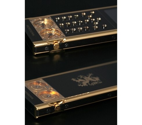 Dispozitivul mobil este realizat din cristale de safir si lemn de abanos, iar pentru stralucirea deosebita este placat cu aur de 24 de karate. 105GMT Gold include un mecanism de ceas Discovery si un sistem anti-soc de protejare a telefonului si a partilor sale componente.